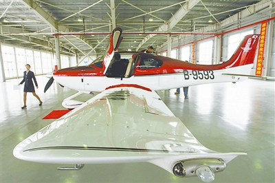 3月19日,广东省珠海西锐通用航空有限公司4S店展示的西锐飞机。该店为国内首家私人飞机4S店。3月16日,珠海西锐通用航空有限公司揭牌,这标志着国内首家私人飞机“4S”店正式开门营业。钟凡 摄