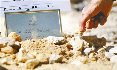 3月21日,在耶路撒冷举行的法国图卢兹犹太中学枪击案遇难者葬礼上,一名犹太妇女将一小块耶路撒冷石放在年仅4岁的遇难者坟墓上。 新华社记者 尹栋逊 摄