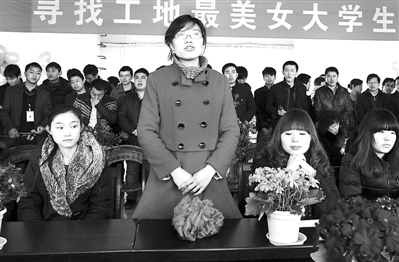 近日,在陕西渭南中铁电气化局西铁工程公司三段铁路施工一线,从华东交通大学毕业后在工地奔波四年的大学生梁雪向大家介绍难忘的工作经历。20多名长期奋战在铁路施工一线的女大学生工友们参加了“寻找工地最美女大学生”活动。 焦宏涛 摄