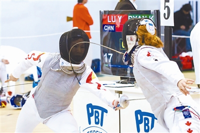3月25日,2012年女子花剑世界杯匈牙利站团体赛在匈牙利布达佩斯进行。在9至16名的比赛中,中国队不敌加拿大队,获第11名,这意味着中国队已无缘伦敦奥运会。图为中国队选手刘咏诗(左)与加拿大队选手雷恩在比赛中。新华社发(弗尔季·奥蒂洛摄)