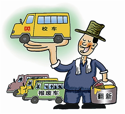 近日,有关河南省汝州市“出产”的翻新报废车辆流入农村并成为校车的消息引发广泛关注。调查发现,报废机动车回收拆解在汝州农村成了一些人依靠家庭式作坊从事的普通工作。而汝州市幼儿园有398辆校车,其中80%以上为翻新后的报废车辆。赵顺清 绘