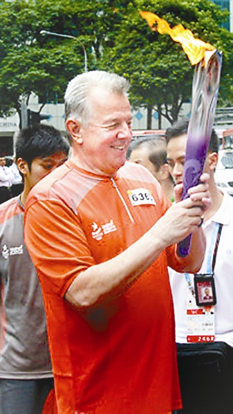 2010年8月13日,匈牙利总统施米特参加在新加坡举行的青奥会火炬传递。阿康 供图