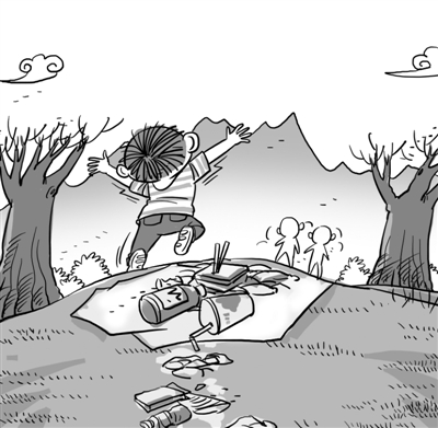 “每次春游前,家长总会准备各式的零食,因此,部分孩子把春游变成了纯粹的零食游,走一路吃一路。一旦没有良好的行为习惯,垃圾就这样产生了”——《新民晚报》近日对春游学生乱扔垃圾的问题给予关注,并提醒学校和老师教育学生随时保持环境整洁,莫让踏青变成“蹋青” 。