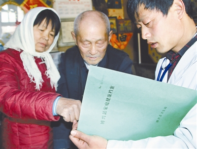 4月5日,在山东博兴县博昌街道西伏村一户农民家里,“家庭医生”刘连永正在指导农民填写健康档案。为促进城乡居民健康,提高医疗服务水平,山东博兴县在全县推行“家庭医生签约式服务”,当地城乡居民可自愿与城区、乡村卫生服务机构医生签约拥有自己的“家庭医生”,并免费享受一系列医疗健康服务。据了解,目前全县已签约的城乡居民约11万余户。本报通讯员 陈彬 恒凤 摄
