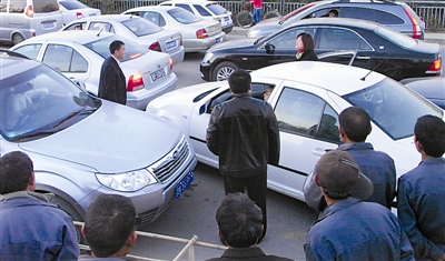 北京五环外一路口,两位车主因为抢道行驶发生口角,差点动武,幸亏路人的劝说才得以平息。 (摄于2010年10月30日)