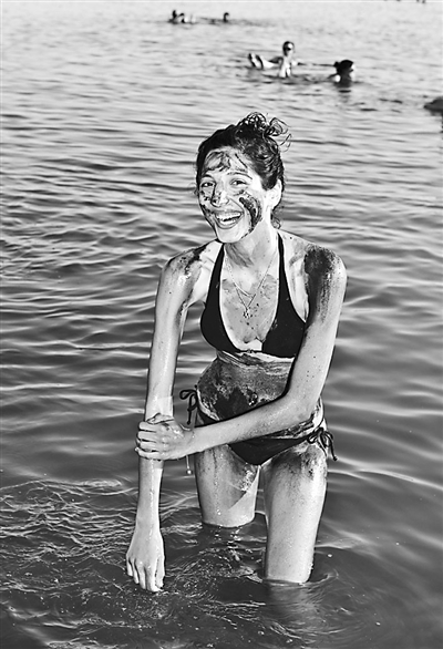 4月10日,人们在死海边的恩盖迪浴场休闲。新华社记者 尹栋逊 摄