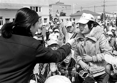 “严禁损毁、偷盗、贩卖和移动铁路器材及标志,同学们再跟姐姐一起大声念一遍。”身着警服的吴亚琪在德清育才民工子弟学校的操场上和1000多孩子互动交流。从2月24日至今,吴亚琪和她所在的杭州公安处文艺小分队,已经在省内铁路沿线学校、厂矿等地倾情表演15场。朱彬 摄