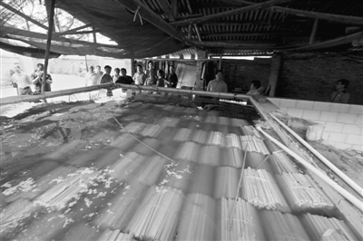 图为广西柳州某一次性筷子生产企业用来浸泡筷子的水池。谭凯兴 摄