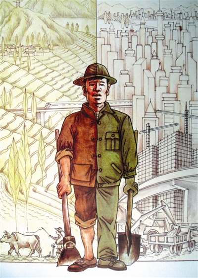 当然,正如这件作品里反映的“农民工”的境遇和无奈,“农民工”的叫法,本身也流露着无奈,相对“打工仔”而言,目前的提法已经是进步了。有些地区称这一群体为“外来务工人员”,并出台政策,规定凡与企业签订劳动合同且企业整体参保的上述人员与城镇职工一样,可依法参加养老、医疗、失业、工伤、生育五项保险,并享受同等的社会保险待遇。说到这里,我们或许可以露出一丝欣慰的笑。