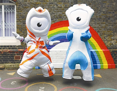这是伦敦奥运会吉祥物文洛克(左)和残奥会吉祥物曼德维尔在英国伦敦亮相(2010年5月19日摄)。 新华社发