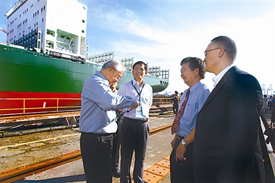 4月13日下午,参加论坛的两岸代表到台湾国际造船股份有限公司实地参观考察。