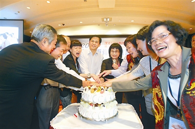 4月13日晚上,大会主办方为在4月份过生日的两岸代表一起庆祝生日。