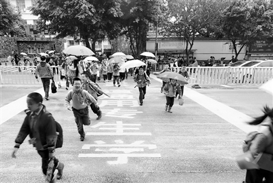 当日,福州部分学校门前的学生专用通道正式启用,原来的白色斑马线改为黄色标线,道路中央的隔离护栏也改成开口活动护栏。
