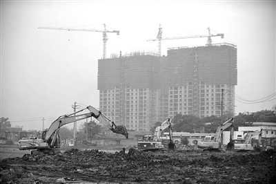 图为4月18日,挖掘机在温州市区一处在建楼盘前平整空地。