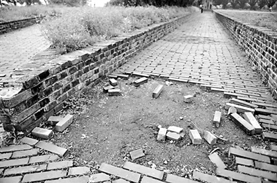 金华建筑艺术公园的部分道路已失修(4月20日摄)。