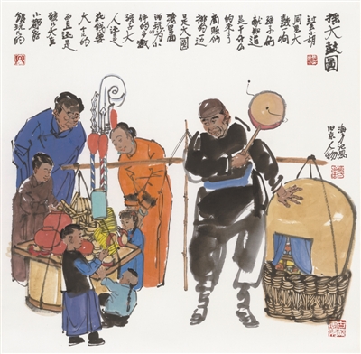 马海方,北京人。1981年毕业于中央美院中国画系。师从卢沉、姚有多、刘渤舒诸先生。现为中国美协会员、荣宝斋画院教授、荣宝斋签约画家、北京文史馆馆员。他以没骨入画,适度勾线,在强调造型准确的基础上对人物做适度夸张,且设色巧拙明亮,不拘一格,形成独树一帜的绘画风格。1990年获首届中国风俗大赛金奖,世界华人美术大展银奖,第八届全国美展优秀作品奖等,入选第八届、第九届、第十届全国美展,并出版著述、画集多部。(法明)