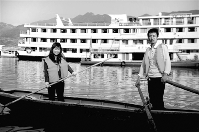 巫山县一对夫妻清漂工代晨安(右)、李声政在清漂中稍事休息 。