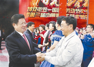 中共中央政治局委员、全国人大常委会副委员长、中华全国总工会主席王兆国,中共中央政治局委员、书记处书记、中宣部部长刘云山,中共中央政治局委员、书记处书记、中组部部长李源潮,全国人大常委会副委员长司马义·铁力瓦尔地,国务委员兼国务院秘书长马凯等党和国家领导人,与来自全国各地的劳模代表,2012年全国五一劳动奖状、奖章和全国工人先锋号获得者代表,香港、澳门工会“五一”代表团成员一同观看了演出。