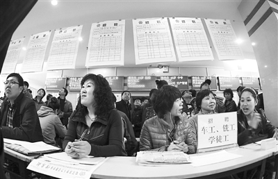 4月25日,黑龙江哈尔滨市人力资源市场举行了技术工人招聘会,吸引了许多“蓝领”前来求职。百余家机械加工企业来到现场招聘,提供就业岗位近千个,用人单位给出的工资条件多数在3000元/月左右。小刚 摄
