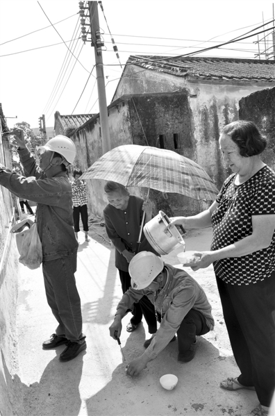 汕头供电局走进农村为村民义务维修表后线,村民自发打伞、送水表谢意。