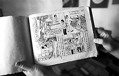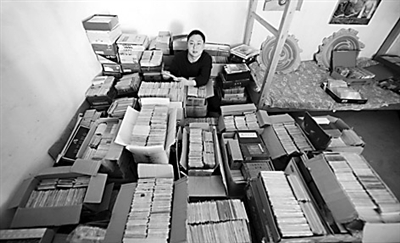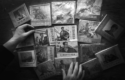 2012年4月22日,重庆市涪陵区大木乡村民张进军正在展示他从小收藏的小人书。如今他已经收藏1万1千多册。家中的阁楼摆满了他几十年来收藏的小人书,妻子也成了保管员。