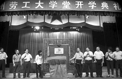 职工免费学习大学堂——劳工大学堂于4月26日在第一次全国劳动大会旧址礼堂正式举办开学典礼。广州市人大常委会党组副书记、市总工会主席陈伟光,市总工会、广州日报社领导及全市基层单位异地务工人员300多人出席了本次仪式。