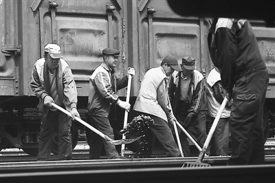 当日是“五一”国际劳动节,青藏铁路公司的养路工们坚守在工作岗位,确保青藏铁路的安全运行。李少鹏 摄(新华社发)