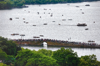 “五一”小长假,杭州西湖游人如织。