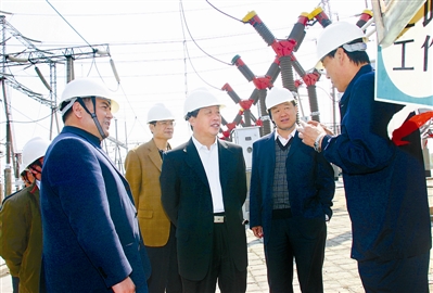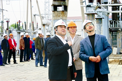 胜利石油管理局党委常委、副局长李中树(中)到220千伏九分场变电站检查指导