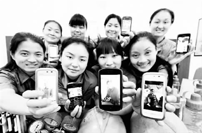 安徽淮北矿业淮北选煤厂女子电焊班成立三年无违章的秘诀是啥?5月7日,当怀有好奇心的笔者到该班取经时,没想到所有班员在未经商量的情况下,竟齐刷刷地亮出了各自的手机!笔者仔细看,这些手机屏面上都是父母、丈夫或儿女的图片,有的上面写着“妈妈,等你安全回家”、“女儿,平安是福”之类的安全寄语。班长王利(后排右二)说,这些照片和寄语时刻提醒我们,为了亲人也要安全操作、筑牢安全防线。 钟笛 摄