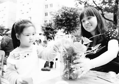 5月4日,重庆能源集团松藻煤矿幼儿园开展了一场利用废旧塑料、纸张、布条等制作工艺品的亲子“环保手工制作”活动,只见班组员工黎英用剪刀将塑料瓶剪成花瓶,将废纸剪成花瓣,女儿则拿胶水将一个个花瓣粘贴在一起,母女俩联手作业,一小时后,一只趣味盎然的花瓶和一束色泽艳丽的鲜花就成了现场引人注目的风景。何荣珍 摄