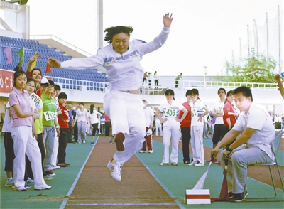 北京朝阳医院日前召开了第十届职工运动会。全院共有823人次参加各个项目的角逐,产生了47个集体和个人的奖项。图为跳远比赛场面。马德强 摄