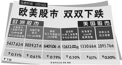 当天早些时候公布的统计显示今年一季度欧元区零增长,并未出现市场预期的经济衰退,因此欧洲股市曾一度上涨。但此后在希腊组阁失败消息的打压下,欧洲股市全线下跌。其中英国《金融时报》100指数跌0.51%,法国CAC40指数跌0.61%,德国DAX30指数跌0.79%。而高风险的意大利股市大跌2.56%,西班牙股市跌1.6%,希腊股市重挫3.26%。