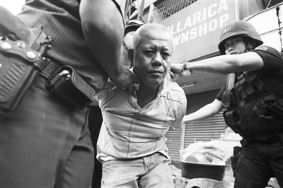 5月16日,在菲律宾首都马尼拉,警察抓获劫匪。新华社发 (乌玛利 摄)