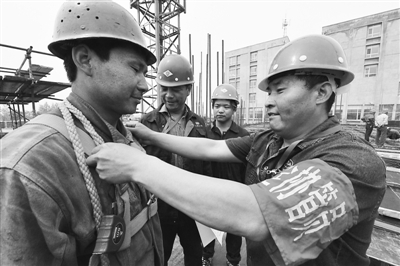 5月13日上午,山西潞安工程有限公司利厚分公司项目部安全协管员吴建刚在出工前为职工进行安全检查。潞安工程有限公司在抓生产建设的同时,始终把安全生产当做头等大事,无论井下还是地面施工,安全生产设施和资金首先到位。截至5月13日,该公司已连续14年安全生产无事故,并连续9年获得“安康杯”竞赛优胜企业称号。本报记者 张宪 摄