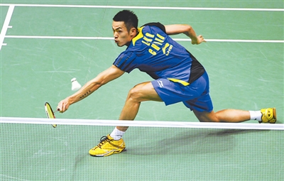 5月20日晚,林丹在首轮比赛中。本报记者 许之丰 摄