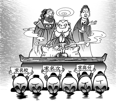 “去卧佛寺请offer(录用通知),到雍和宫求姻缘。”曾几何时,京城高校的学子们中间流传着这样的“神话”,乍一听多少有些荒唐稚嫩,但其实与如今老师们的良苦用心并无二致。通过祭拜神灵,为尚未实现的人生目标找点精神寄托,自然能够理解,但倘若过多地寄希望于神秘力量,而偏废了主观的努力拼搏,则着实不明智。无论是否收钱,为师者置传道授业解惑的天职于不顾,却一心诉诸神灵,学校甚至出面组织倡导,实在不该。