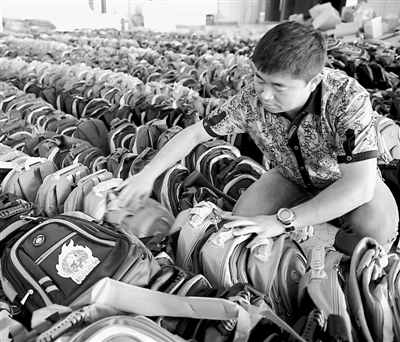 5月21日,浙江义乌爱心公社的志愿者清点发往各地的爱心书包。当日,在“2012爱心书包漂流活动”中,义乌爱心公社募集的7600套爱心书包及文具等开始装箱,首批发往青海、新疆、云南及四川凉山等地,力争在“六一”儿童节到来之前,让那里的留守儿童背上新书包。张建成摄