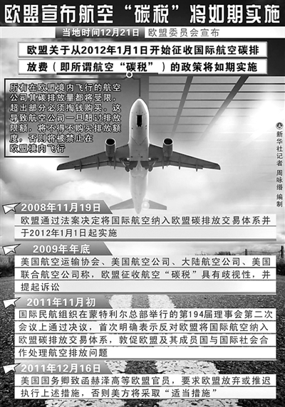 欧盟从2012年1月1日开始征收国际航空碳排放费