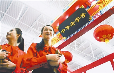 5月12日,中国—天津第十九届投资贸易洽谈会上的中华老字号企业商品展区标识。李胜利 摄
