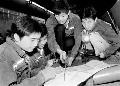一台新装备,在大家眼皮子底下一会儿就被拆得七零八落,一会儿又被一点点恢复原状——5月21日,重庆能源集团石壕煤矿采煤621队采机维修班就是用这种反复拆拆装装的方式,给新来的4名实习生讲解机器设备的构造、原理以及性能。这招现场拆装培训,是该班上一任班长贾永勇创建的,该班24名员工通过这种直观的培训,边学边练,很快提高了维修技术。这不,现任班长李平(右二)正继续用这招培训新员工呢!蒲德贵 摄