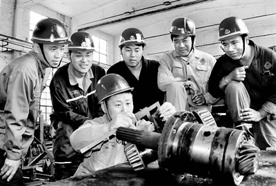 把工作现场当做实践课堂,把疑难问题当案例分析,这是山东兖矿集团兴隆庄煤矿综采装修队采掘机组员工的一条学习之道。5月21日一大早,笔者恰巧赶上“实践课堂”开课:工友们围聚在一起,正专心致志地听高级技师、组长高少利(左二)讲解故障排除法。如今,该班组员工已养成了天天学业务、时时练技术的良好习惯,这习惯使原本技术薄弱的班组已成长为集团公司的学习创新型班组。董 朋 摄