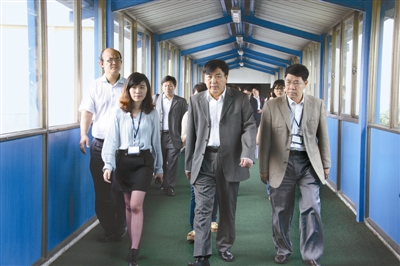 在开展“面对面、心贴心、实打实服务职工在基层”活动中,海南省人大副主任、省总工会主席符兴(中)带头深入企业调研。图为他在海南亚洲太平洋酿酒有限公司车间调研。