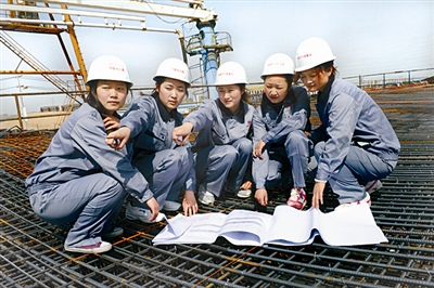 天津津秦客专东丽制梁场,是中铁十八局集团一公司承担每榀自重900吨箱梁预制任务最大的梁场。图为大学毕业的新员工在预制梁施工现场,按照设计图纸对钢筋绑扎进行严格检查。李永旺 摄