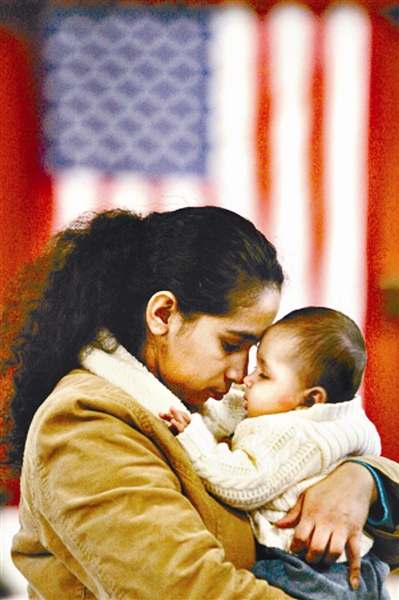 2007年3月9日,玛丽娅与4个月大的女儿团聚。玛丽娅是非法移民,之前被美国警方逮捕,由于女儿无人照料她被释放。阿康 供图