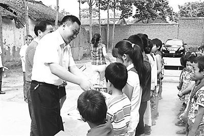 图为汝州市人大党组成员、市总工会主席姚军柱在农村学校慰问留守儿童。 李军现 李晓利 摄