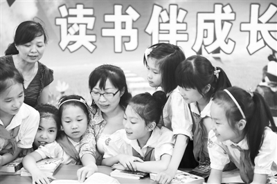 5月30日,在武汉市江汉区万松街青松社区爱心妈妈辅导站的活动室里,“图书漂流”活动正式启动,100余名“流动花朵”在志愿者的帮助指导下,选读精彩图书。图为“爱心妈妈”和“流动花朵”一起共同感受读书的乐趣。 本报记者 邹明强 通讯员 朱素芳 摄