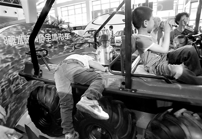 ②:“妈妈快帮我上去。”听说这辆八驱水陆两用全地形车是为南极科考研制的,程程非要上去一看究竟。