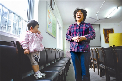 西安中铁一局社区,社区副主任魏本清一曲高歌,发出嘹亮的“海豚音”。(邓小卫摄于4月15日)