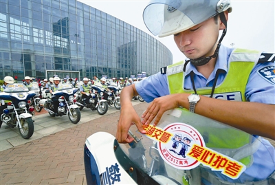 6月4日,安徽芜湖交警支队组织的“爱心护考”车队亮相街头。高考将至,安徽芜湖交警支队组织15辆皮卡车和30辆警用摩托车,分布在芜湖10个考点,处理应急事件、为考生和家长提供服务。 孙芮 摄